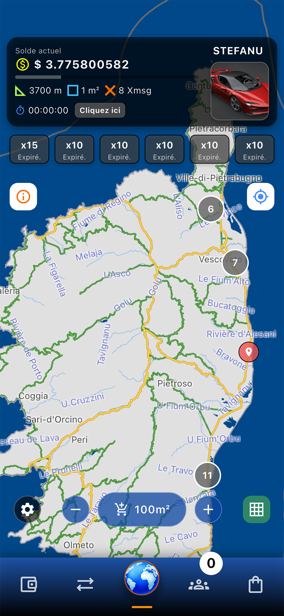 - Claim Your Territory: Buy 100m² parcels within a 50m radius of your real-world position.