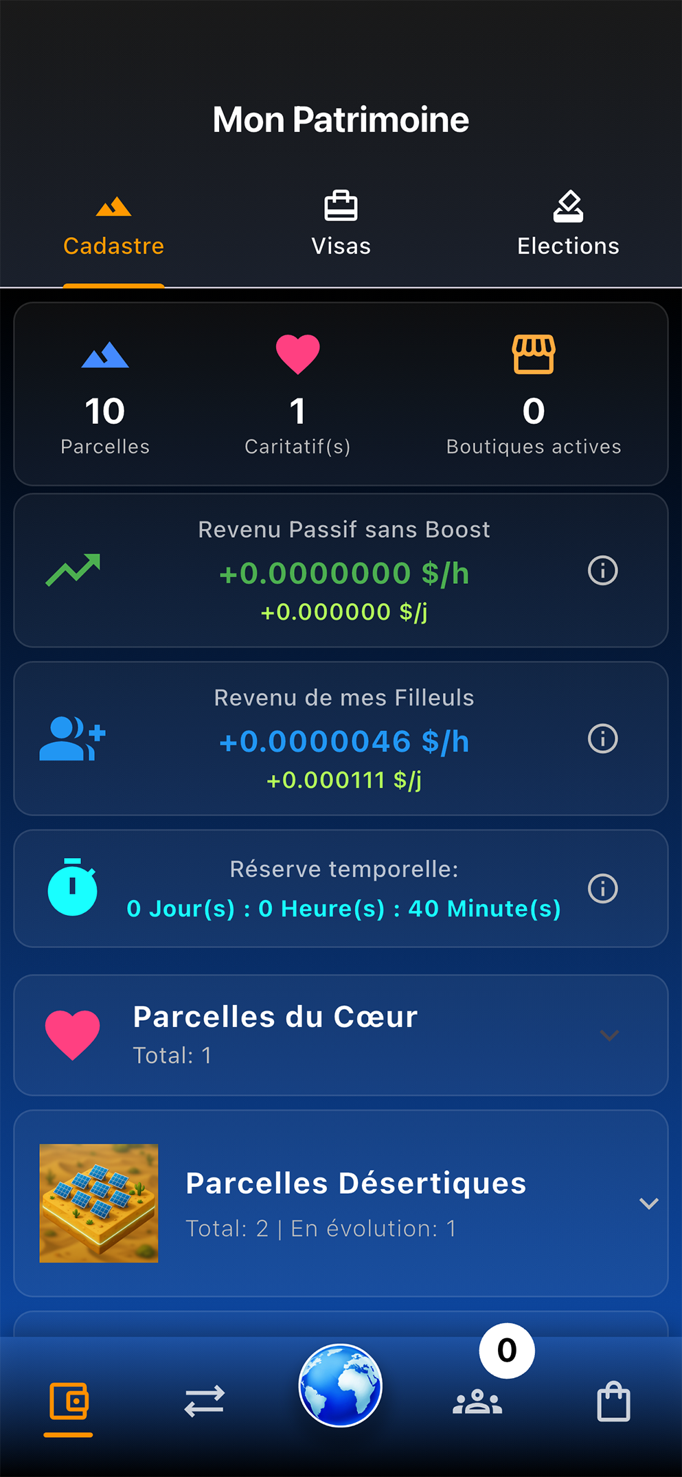 - Passive Income ($): Your parcels generate dollars even while you're offline. Withdraw your earnings via PayPal.